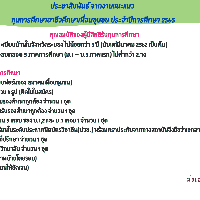 วันที่ 20 กันยายน พ.ศ. 2565 ดร.อรทัย โยธินรุ่งเรือง สุดสงวน ผู้อำนวยการวิทยาลัยเทคนิคสัตหีบ ได้มอบหมายให้ นางสาวเกศราภรณ์ แบบอย่าง เจ้าหน้าที่งานเเนะเเนวฯ ได้นำนักเรียนนักศึกษา รับทุนการศึกษาโครงการมอบทุนการศึกษาเเก่เด็กนักเรียนเเละเยาวชนผู้ยากไร้ในพื้นที่จังหวัดชลบุรี 📚🖋 ให้เเก่นักเรียนนักศึกษาของวิทยาลัยเทคนิคสัตหีบ ⚙️🛠 ณ ศาลาประชาคมเทศบาลเมืองบ้านสวน อำเภอเมืองชลบุรี จังหวัดชลบุรี