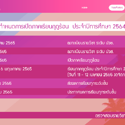 กำหนดการเปิดเรียนภาคฤดูร้อน ประจำปีการศึกษา 2564