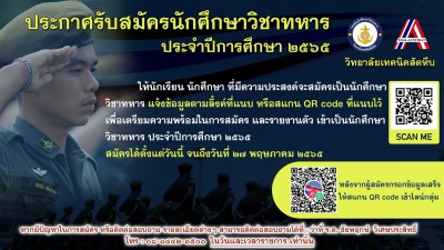 ประกาศรับสมัครนักศึกษาวิชาทหารประจำปีการศึกษา 2565