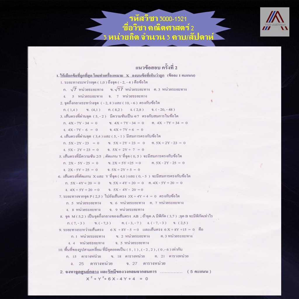 แนวข้อสอบเรื่อง เส้นตรงและวงกลม